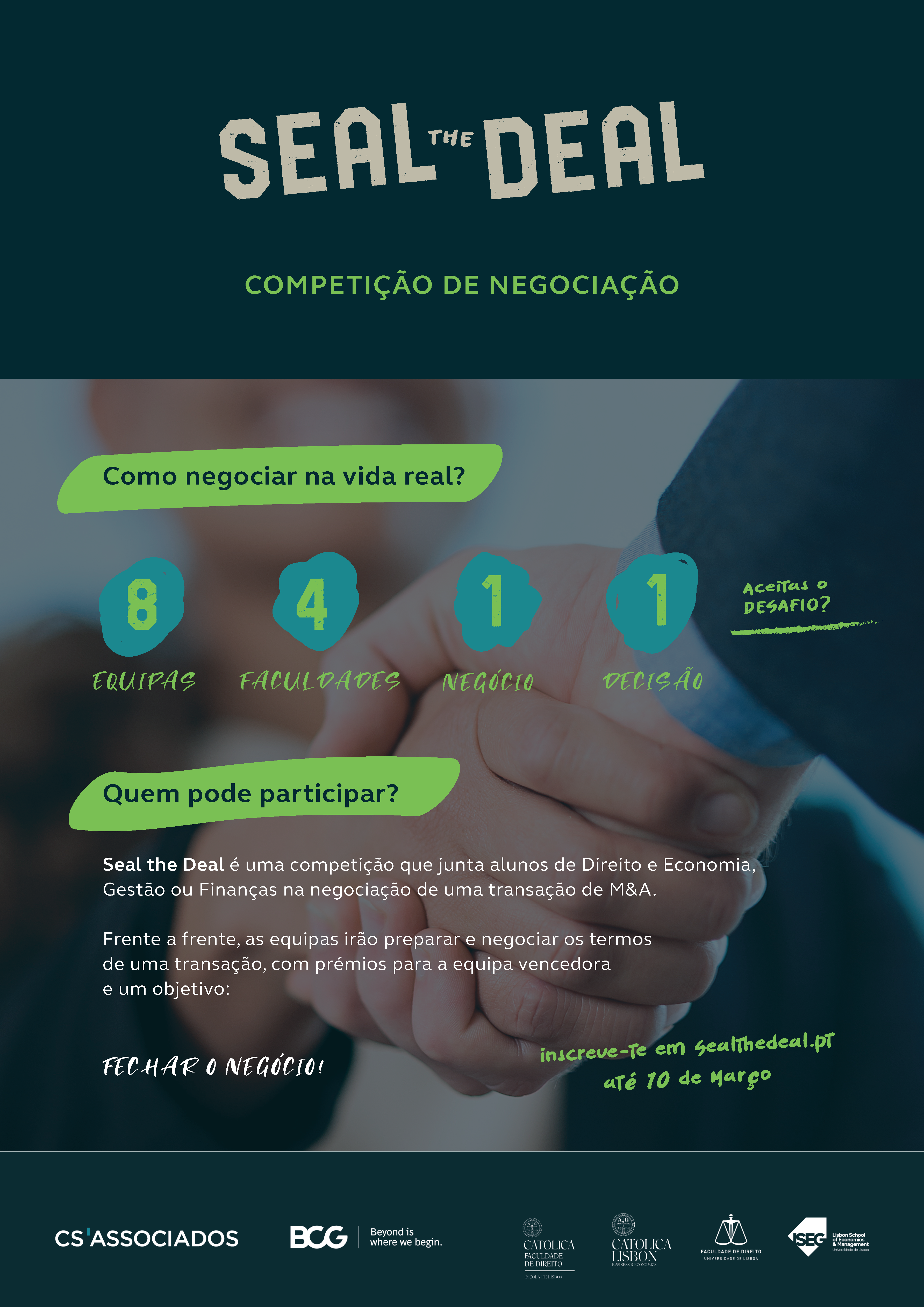 Na competição Seal the Deal oito equipas defrontam-se para negociar uma transação de M&A.