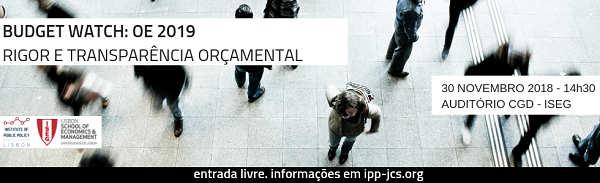 Budget Watch: OE 2019 – Rigor e Transparência Orçamental", que tem início às 14h30, no Auditório da Caixa Geral de Depósitos (ISEG, Ed. Quelhas, 2º piso).