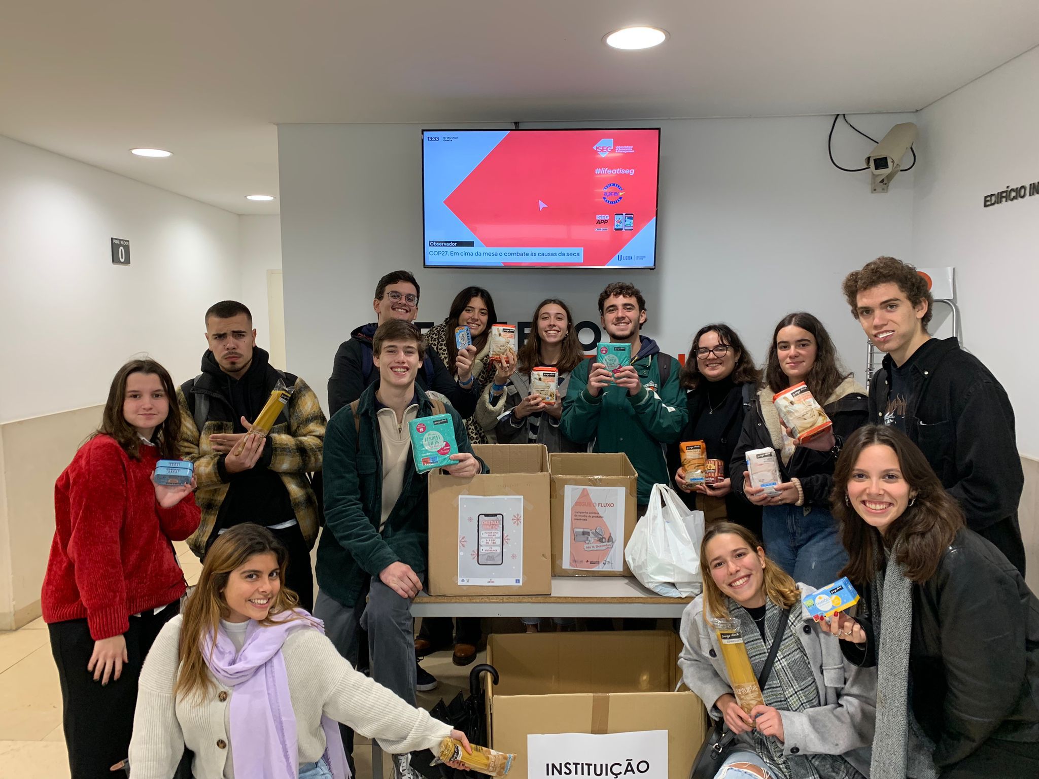 Estudantes do 1º ano do ISEG reúnem mais de 100kg de bens essenciais em ação solidária