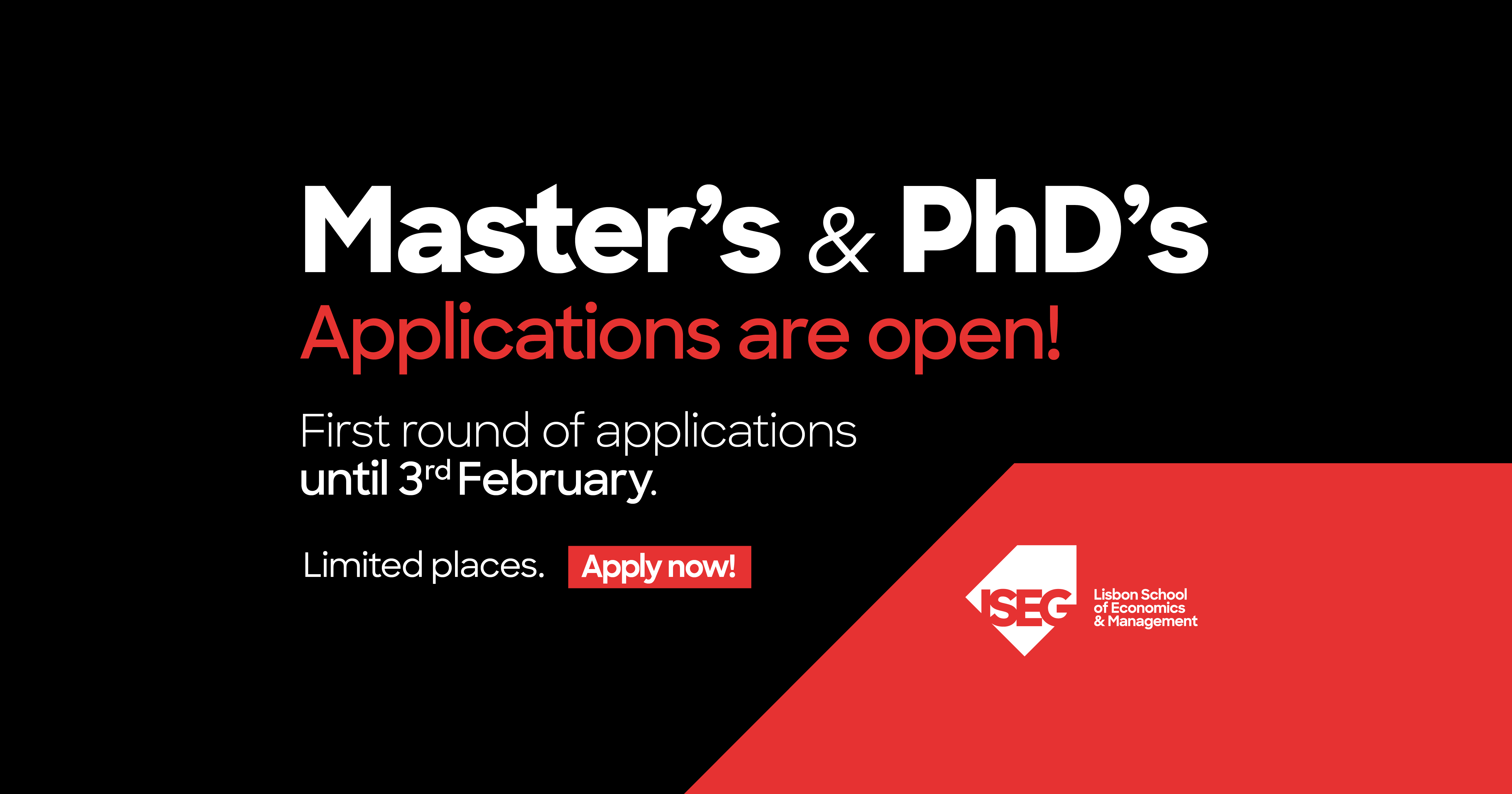 Candidaturas abertas para Mestrados e Doutoramentos do ISEG
